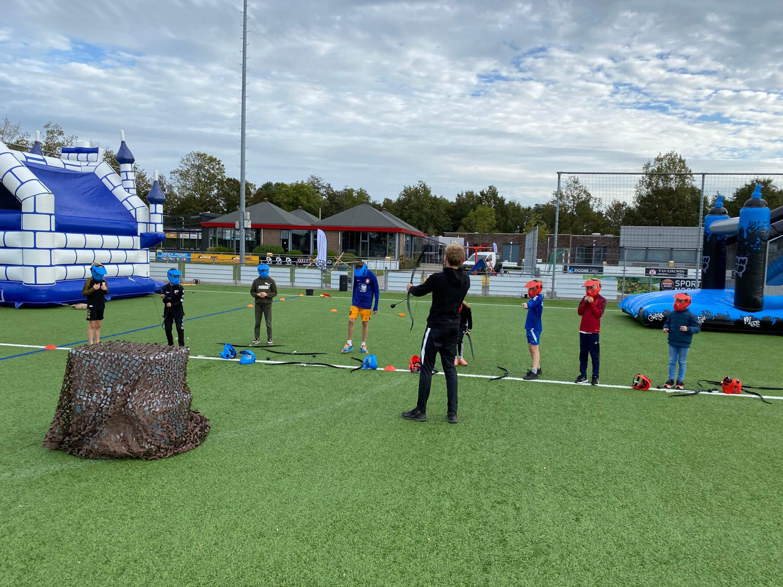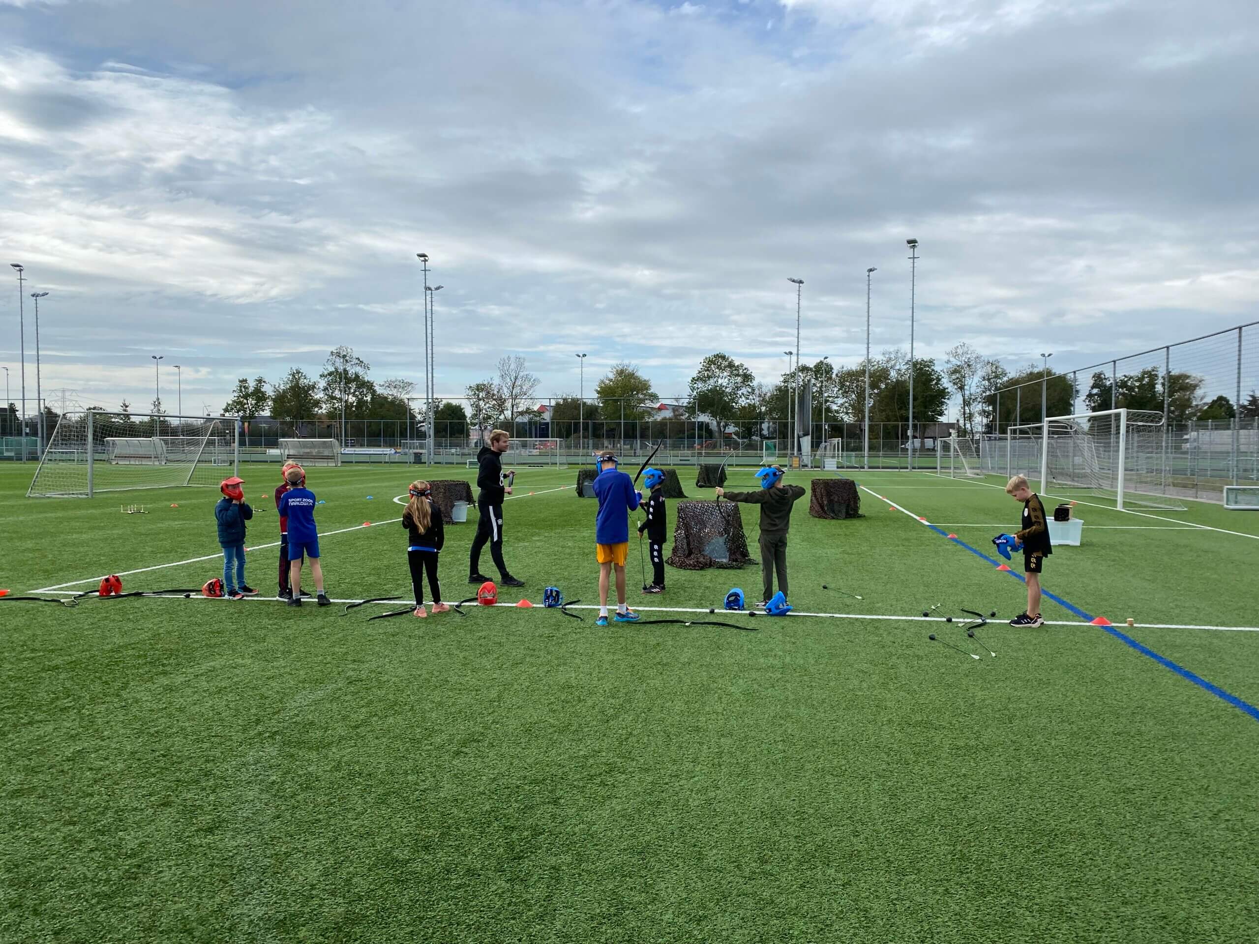 Het Archery Tag feestje spelen we standaard buiten op de velden van r.k.v.v. Westlandia in Naaldwijk.